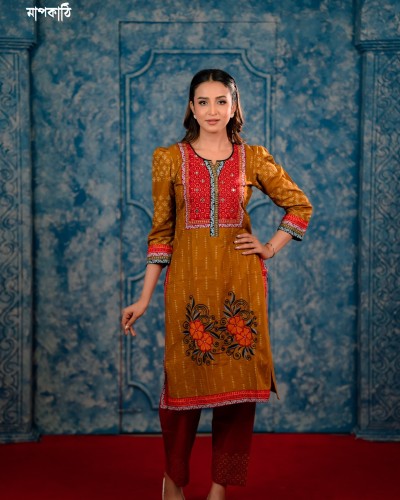 ▪️ডিজাইন- স্কিন প্রিন্ট + এমব্রয়ডারি